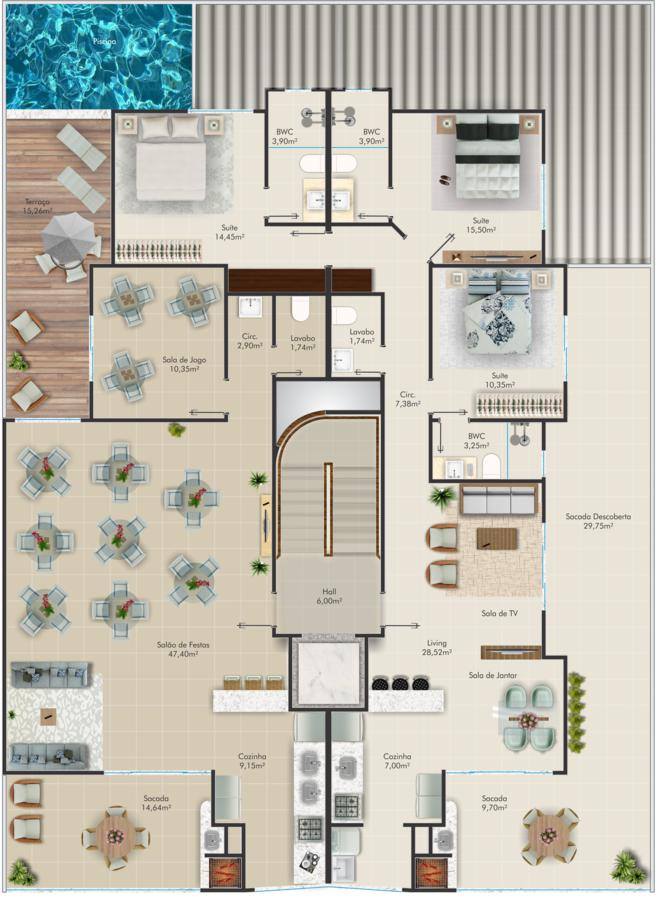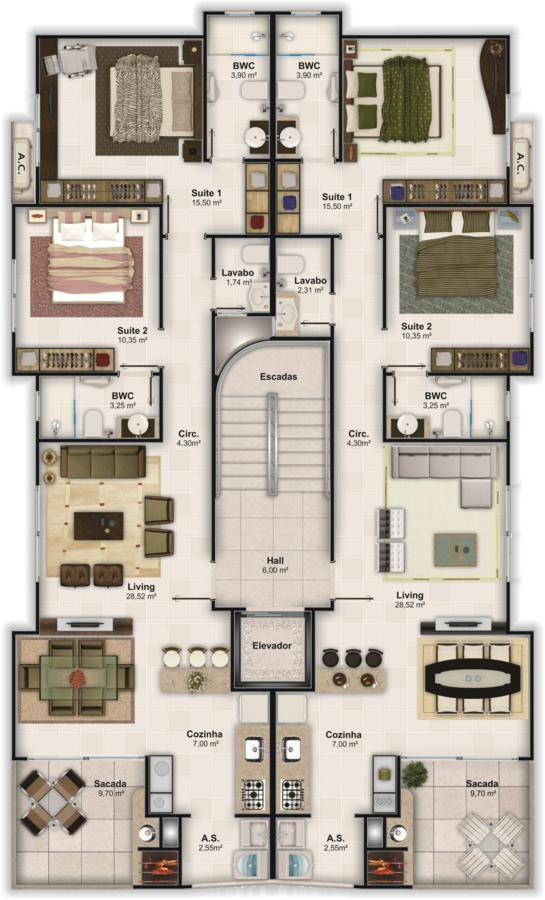 Apartamento: 02 suítes - 02 vagas de garagem, porcelanato e piso laminado nos dormitórios, espera para aspiração central, rebaixado em gesso, 87,0 m² privativo.Edifício: com piscina, sala de jogos, salão de festas, captação de água pluvial.